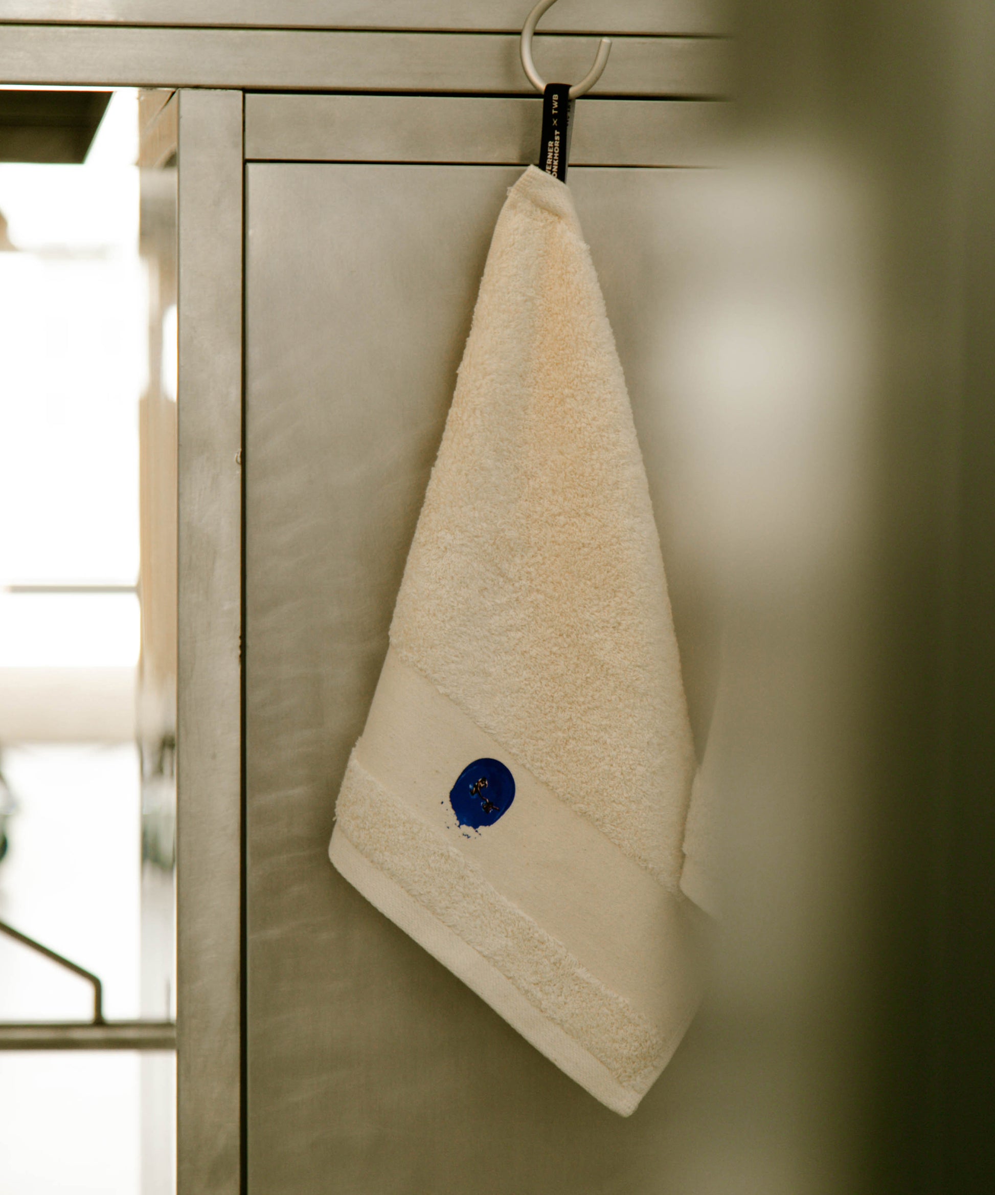 It is a hand towel that vividly represents the original work of contemporary artist Werner Bronkhorst in a digital print method.