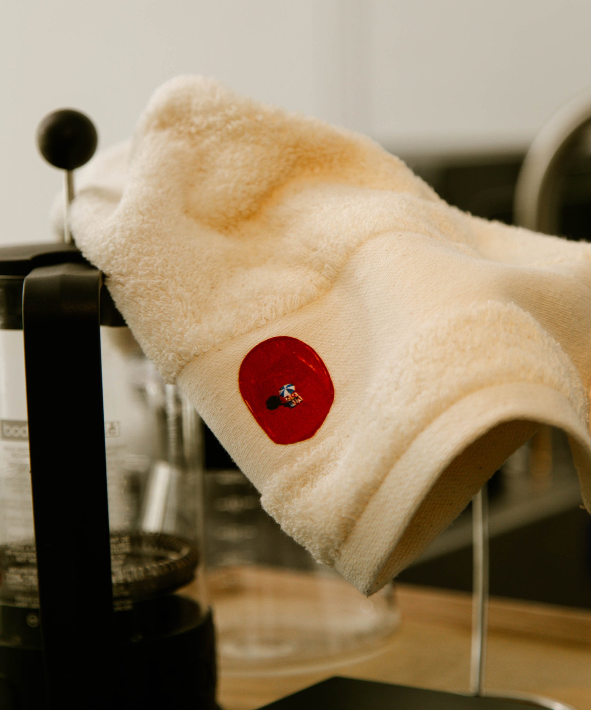 It is a hand towel that vividly represents the original work of contemporary artist Werner Bronkhorst in a digital print method.
